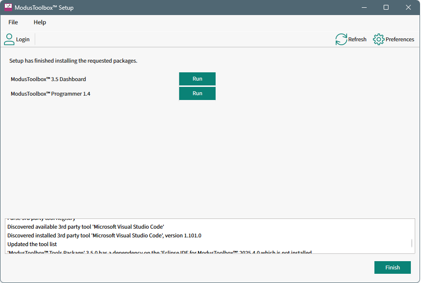After the installation is complete, return to the ModusToolbox™ Setup window and click the