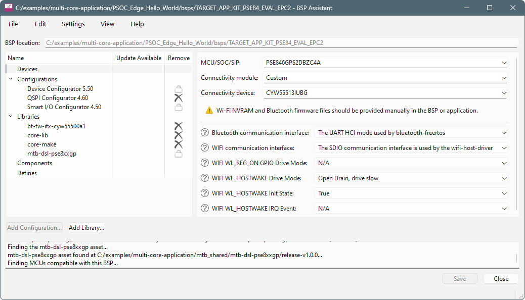 Use the BSP Assistant to change devices or add and remove configurations for the BSP in your application. The tool offers GUI and CLI versions. For more details, refer to the BSP Assistant user guide.
