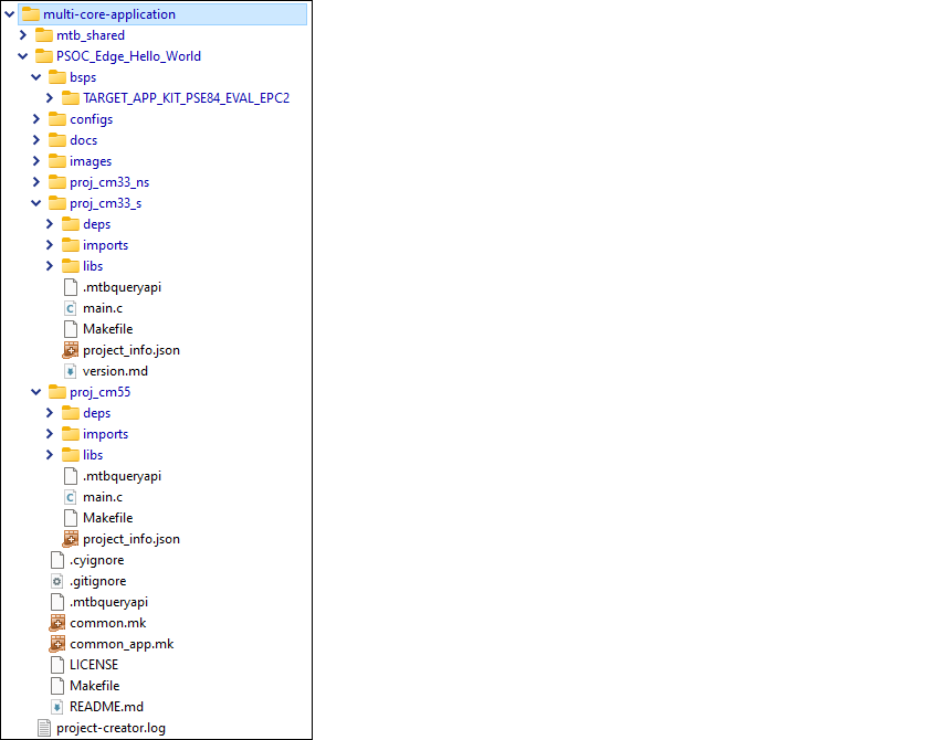 Multi-core project subdirectories – These contain the source code and Makefile for each specific core project. The name format is proj_<core> ; for example, " proj_cm7_0 " or " proj_cm0p ".