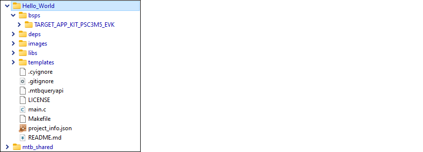 deps subdirectory – By default, this subdirectory contains <library>.mtb files for libraries that were included directly or for which you changed using the Library Manager.