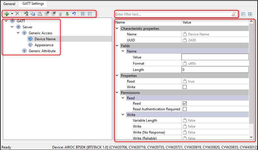 GATT Settings tab (Option1..4)