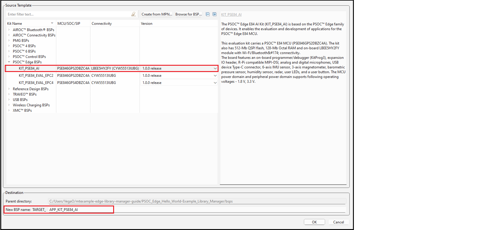 Change the New BSP name, if desired, and click OK. The new BSP will appear on the list of BSPs on the main Library Manager window.