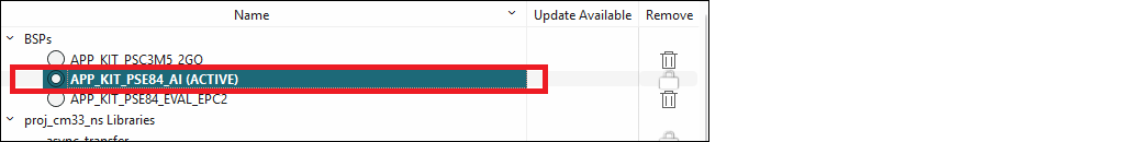 The active BSP for the application displays in bold text with "(ACTIVE)" next to it. An application can only have one active BSP. If your application has more than one BSP included, select one of the other BSPs to be active by clicking the radio option next to it. You can also choose to right-click on it and select Set as** Active BSP**. Then, click the Update button.