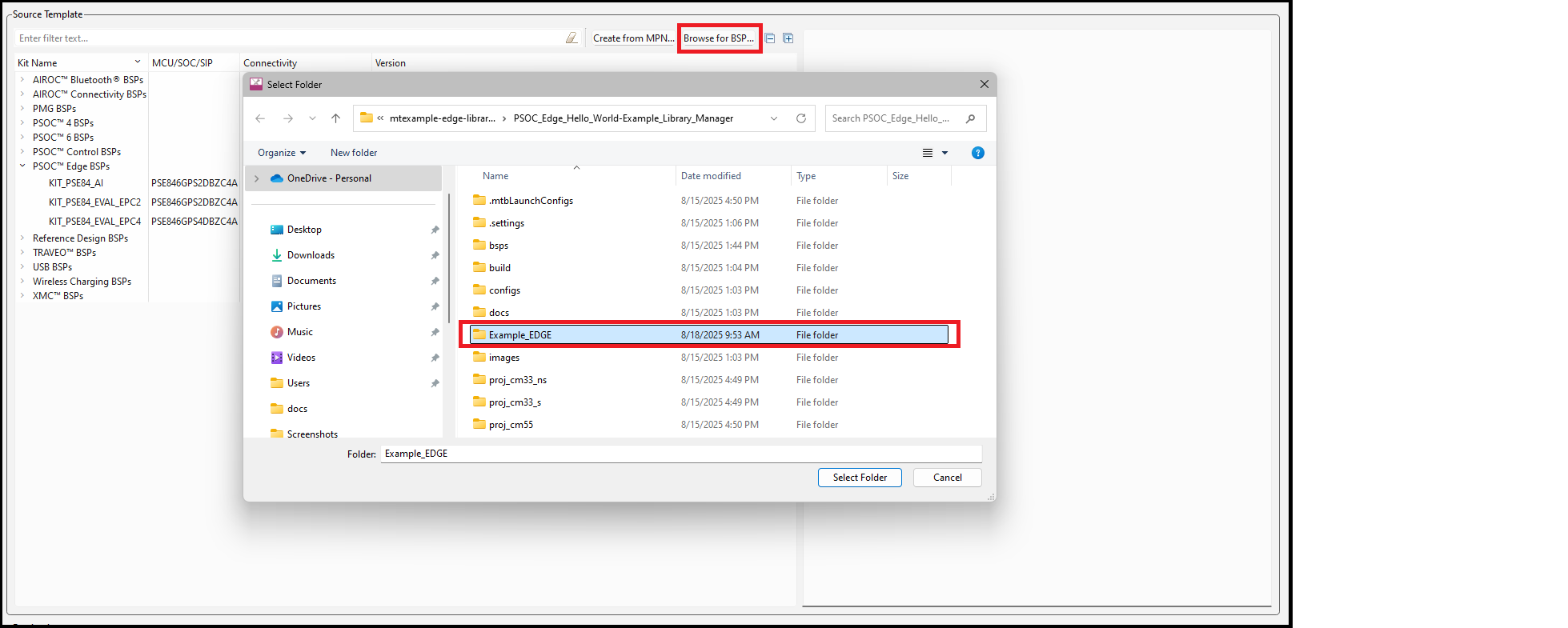 On the Add BSP dialog, click the Browse for BSP button. Then on the Select Folder dialog, navigate to and select the desired BSP and click Select Folder.