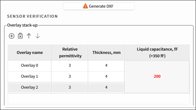 When the value is below 350fF, you can still generate a *.dxf file but the sensor may have low performance.