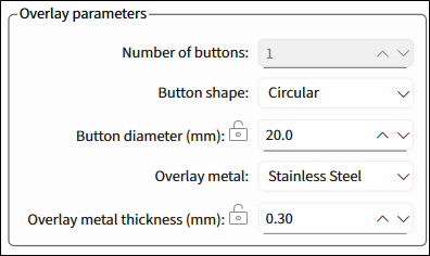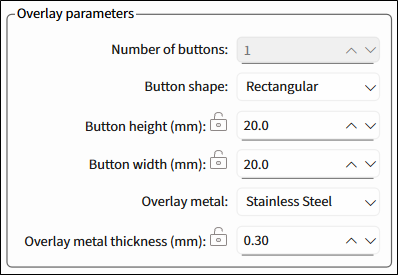 – Visible only for a rectangular button. For Cavity thickness/airgap, the dimensions are the same. The range is 8-28, default – 20.