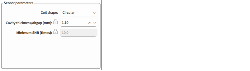 • Cavity thickness/airgap (mm) – The gap between the overlay and the sensor coil. The range is 0.3-7. Default – 1.10.