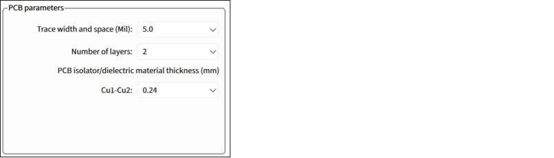 • PCB isolator/dielectric material thickness (mm) – Enabled for more than 1 layer. The thickness of PCB Isolator or dielectric material used between Cu layers.