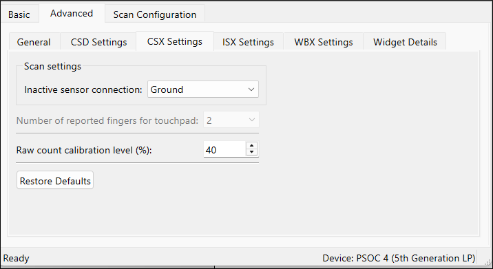 ). This subtab is relevant only if at least one widget uses the CSX sensing method.
