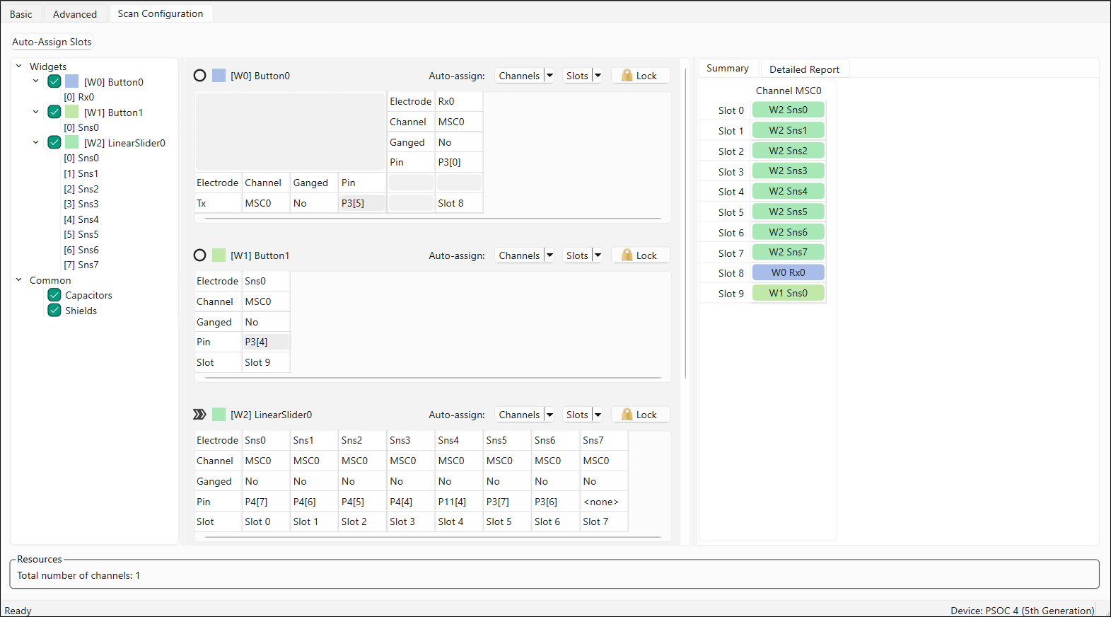 The Summary table visually represents scan slot configuration. The cell color indicates the state of a scan slot: