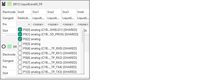 You can use the multi-pin selection to configure more than one pin assigned to one sensor. The feature supports all sensing methods: CSD, CSX, and ISX (see
