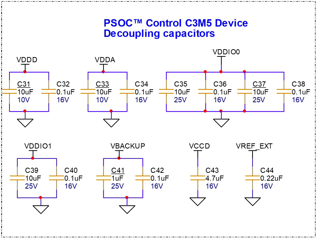 The PSOC™ Control C3M5 Compact Kit has the majority of the components assembled on the board for a specific functionality. In a few cases where the component is not loaded on the board (only the footprint is available), the user needs to have particular rework done on the board based on the requirement. Based on the reference designator defined in the schematic design, the user can populate the required component on the board. For manufacturer details of the component, refer to the PCBA bill of material available for the kit on the