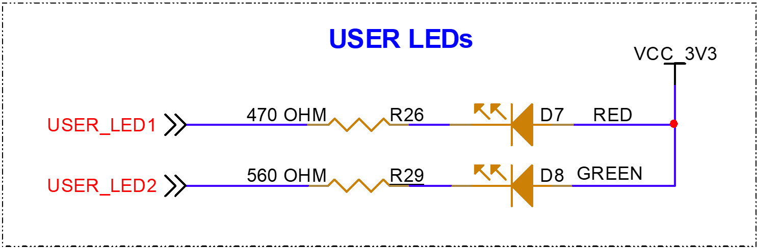The compact kit will have two user LEDs connected to free IOs. The user can utilize these LEDs for any indication purpose based on the user-specific application.