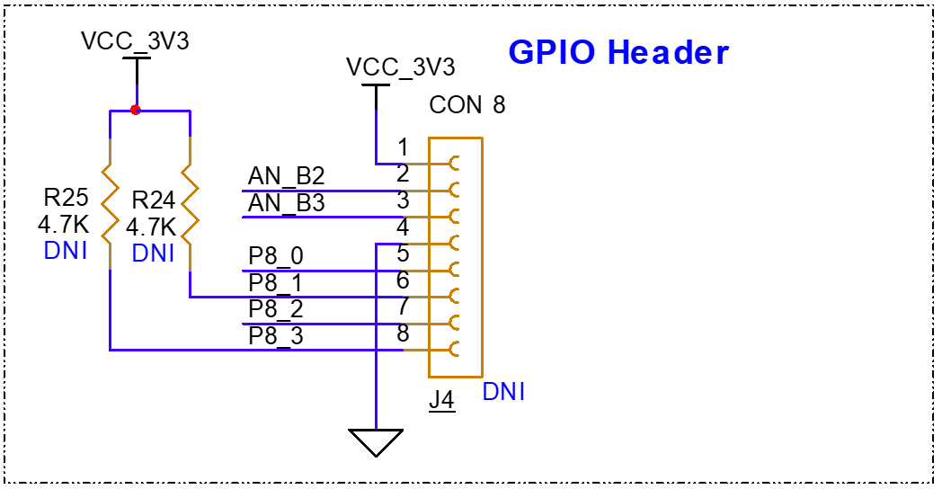 Provision is given to populate an 8-pin header from which the user will be able to communicate from the PSOC™ Control C3M5 device to any externally connected device or sensor interface. The default configuration does not populate connector J4, so the user needs to populate it themselves. For connector details, refer to the PCBA BOM for the kit available on the kit