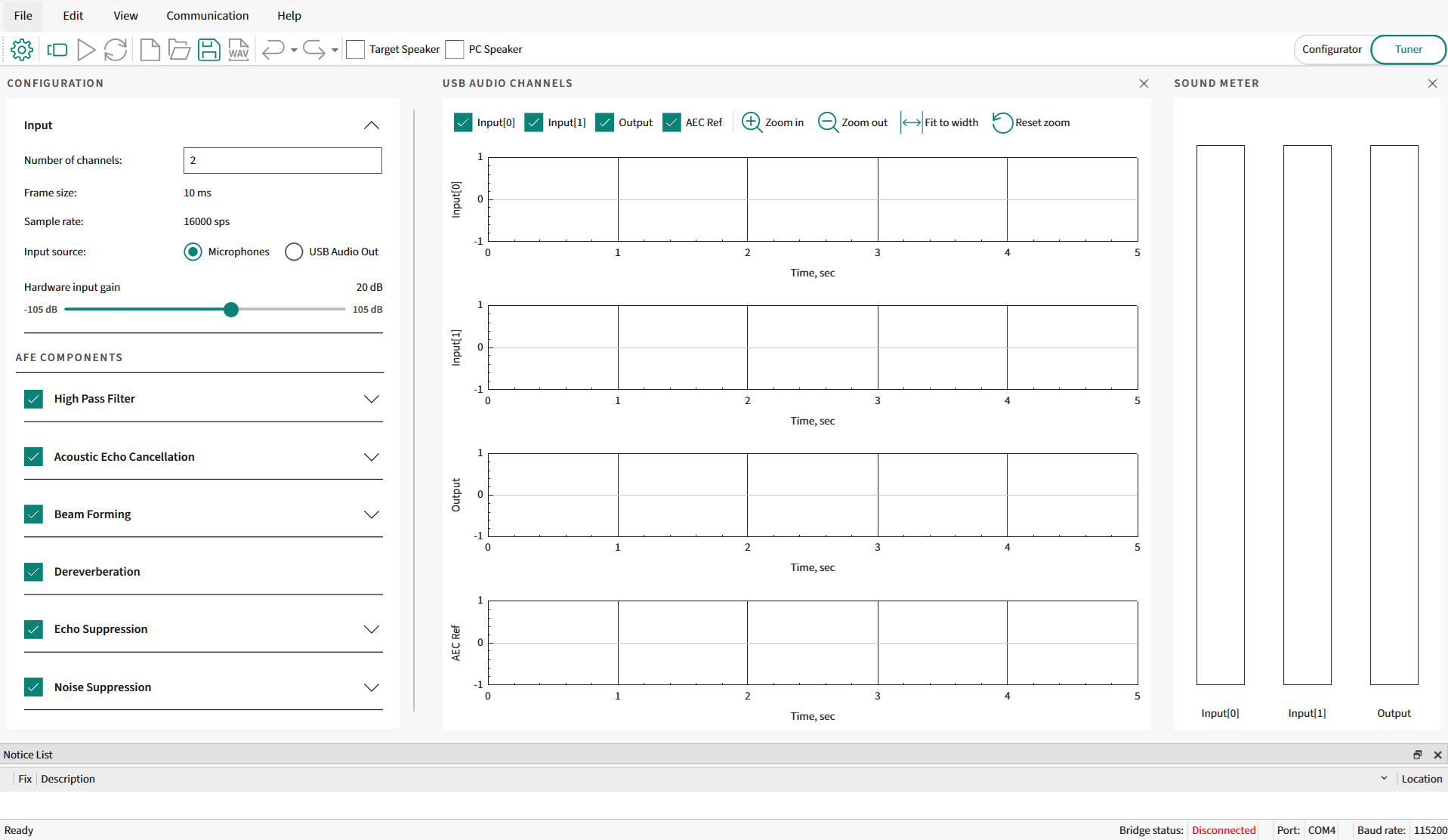 Audio Front End (AFE) Configurator:
