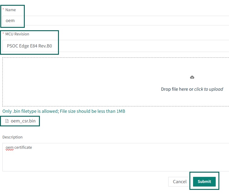 OEM_ROT_PRIVATE_KEY: This key is used to sign the first OEM code in the system when secure boot is enabled. This key may also be used to sign other projects or firmware updates that are installed on the device