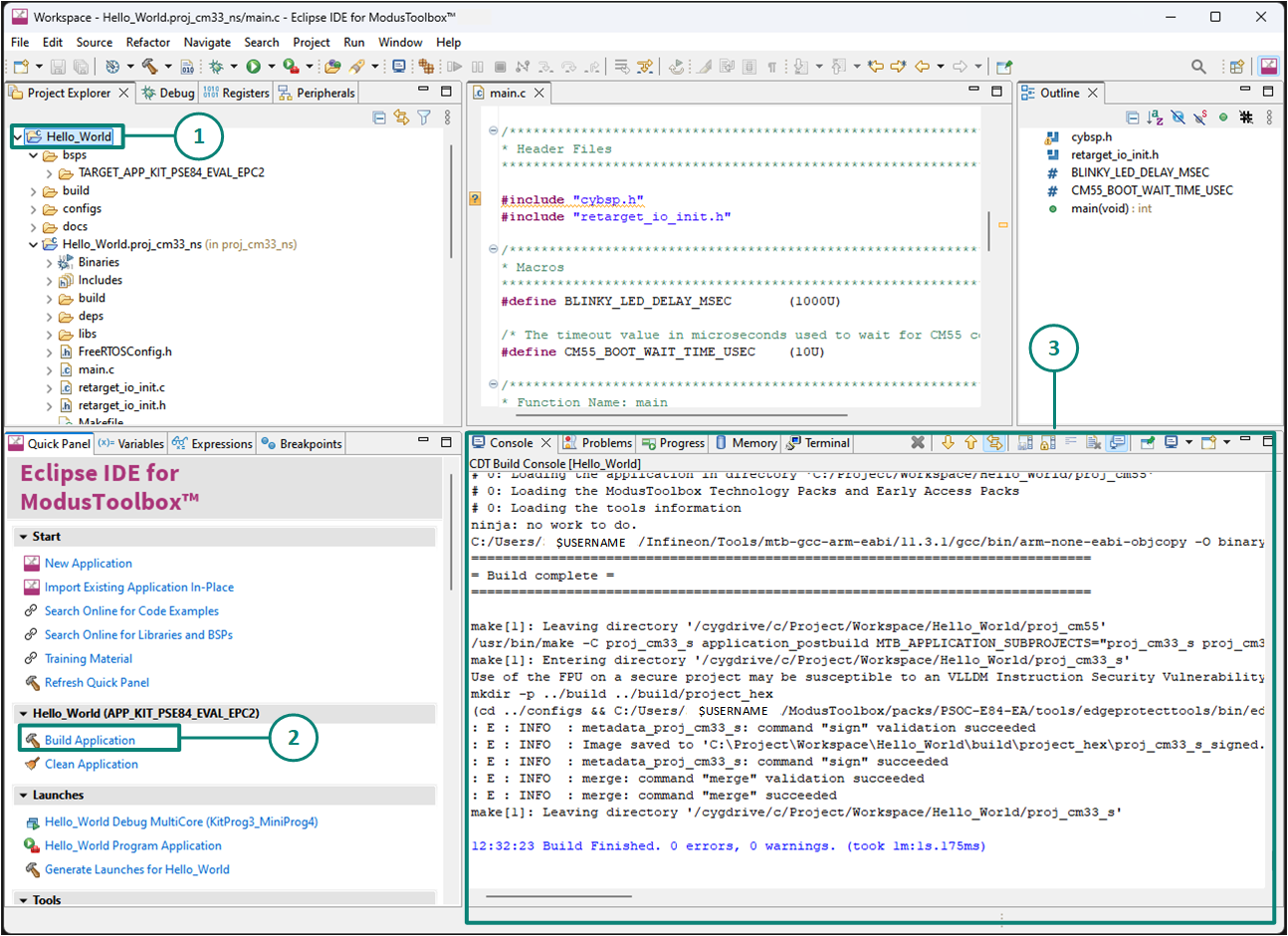 ModusToolbox™ tools and resources can also be used on the command line. For more details, see the build system chapter in the