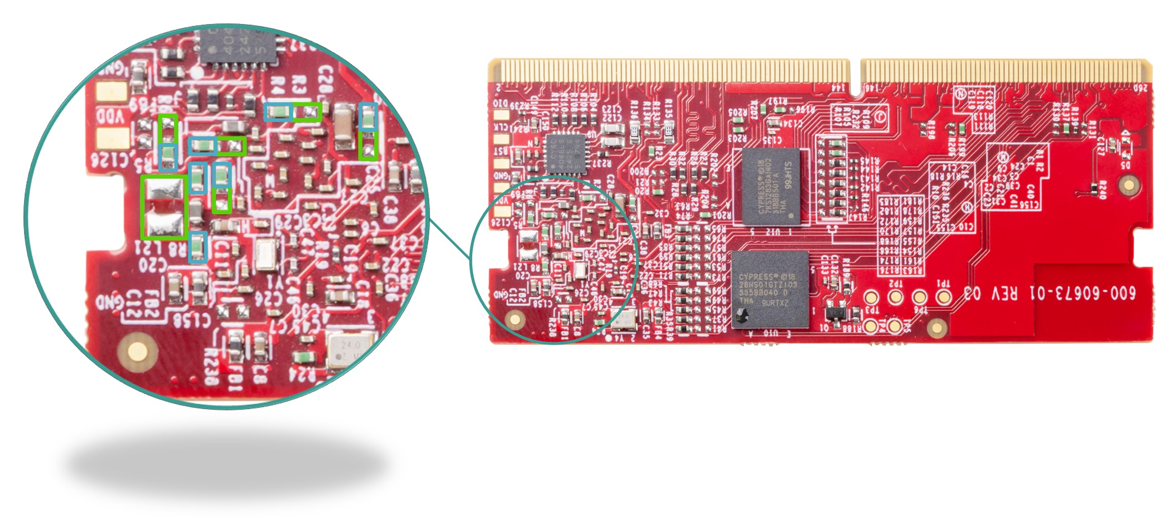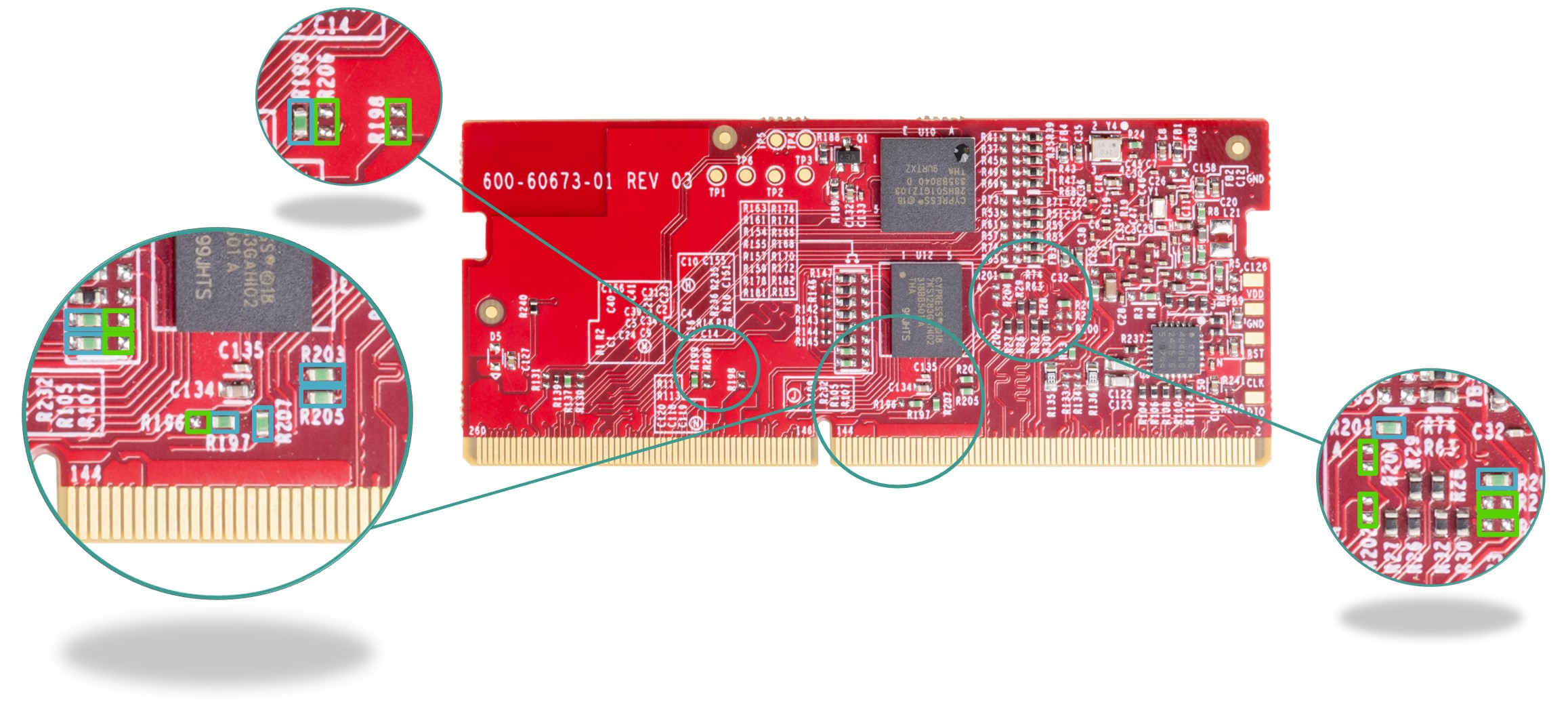 products embedded on a printed circuit board (PCB) for demonstration and/or