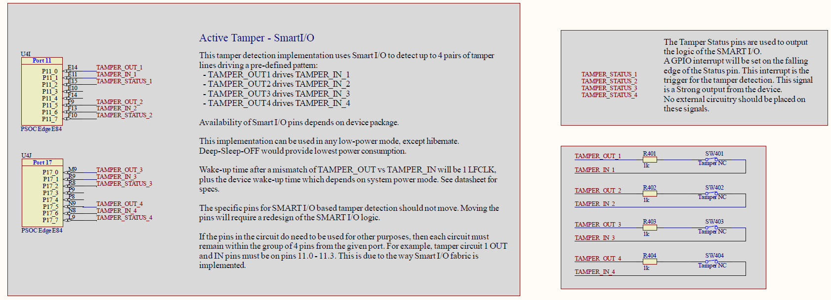 Furthermore, the document provides detailed descriptions of both software and hardware solutions for implementing passive and active external tamper detection using PSOC™ MCUs, enabling developers to effectively integrate robust security measures into their designs, ensuring the integrity and reliability of their embedded systems.