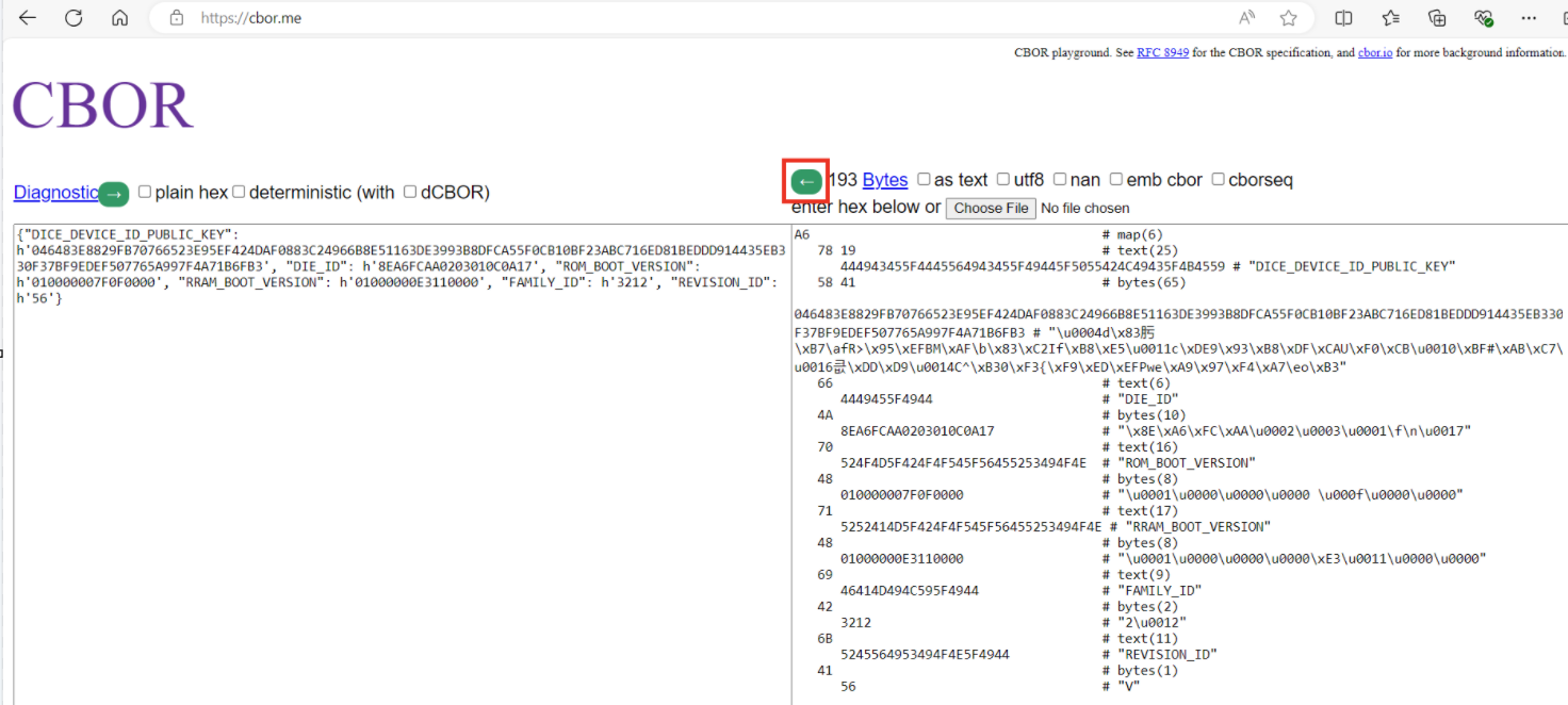 For PSOC™ Edge devices, the certificates use the CBOR/COSE format. See the