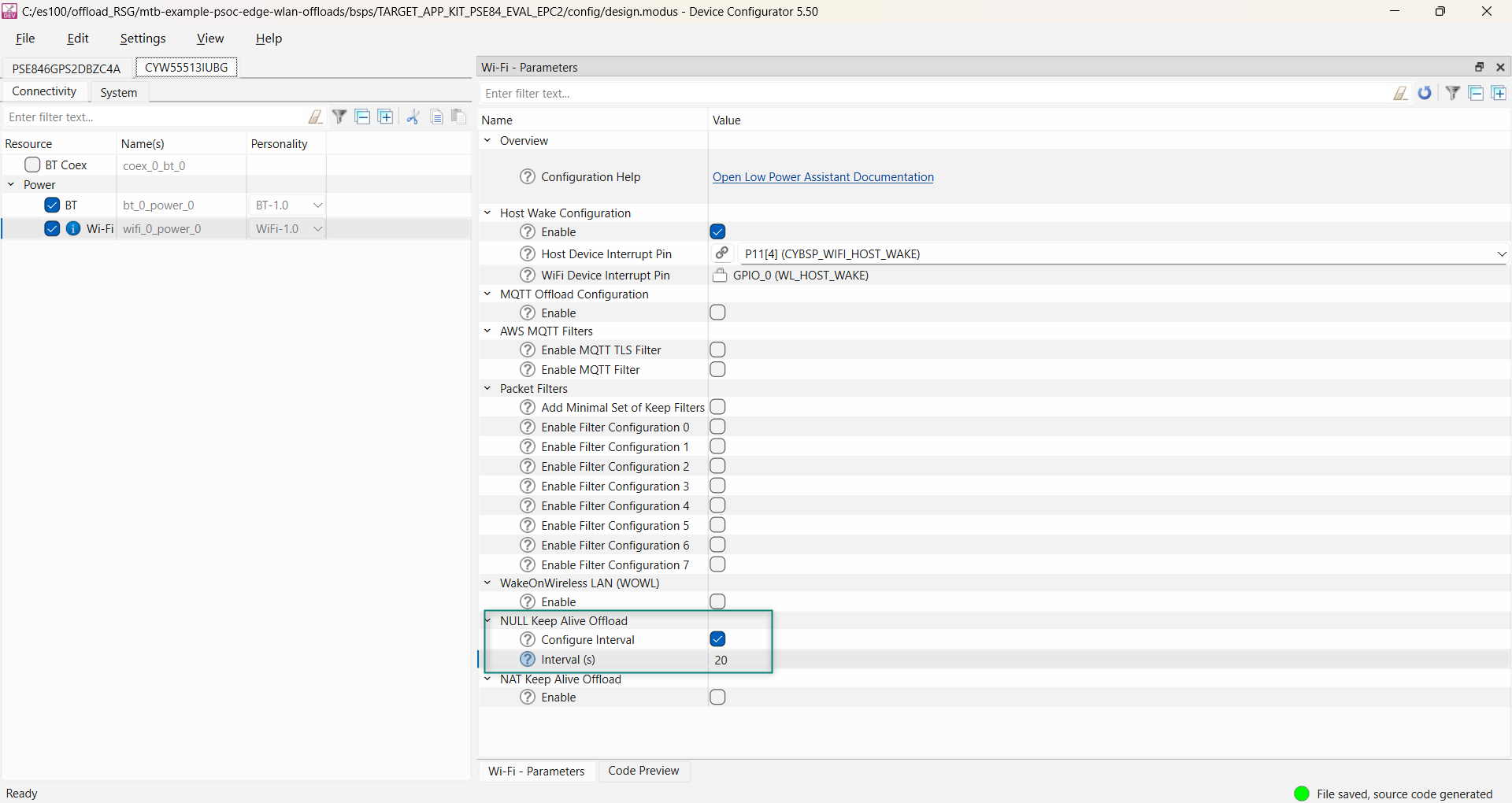 AIROC™ CYW55513 Wi-Fi & Bluetooth® combo chip power modes