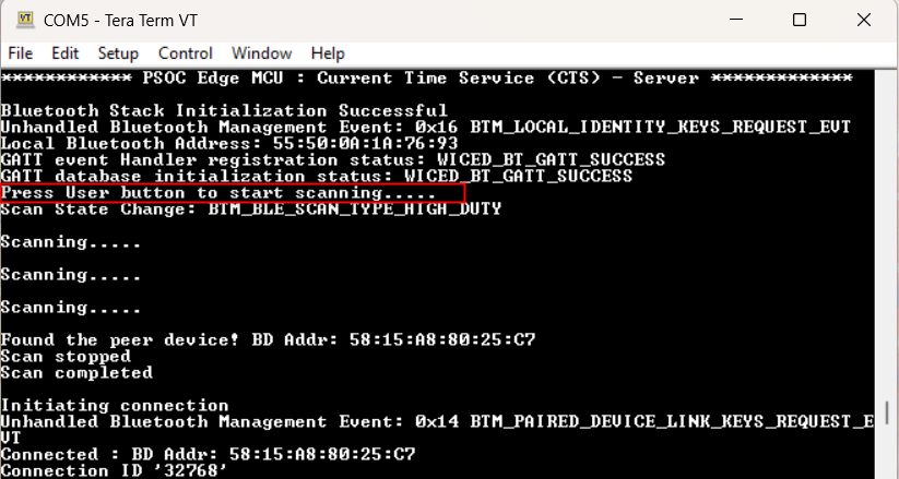 The AIROC™ CYW55513 Wi-Fi & Bluetooth® combo chip device runs the lower levels of the connectivity stack in hosted mode while a host processor such as PSOC™ Edge E84 MCU runs the upper levels of the connectivity stack and the application. This solution supports Bluetooth® and Wi-Fi. The communication between the host MCU and the AIROC™ device happens via UART in case of Bluetooth® LE and Secure-Digital-Input-Output (SDIO) in case of Wi-Fi.
