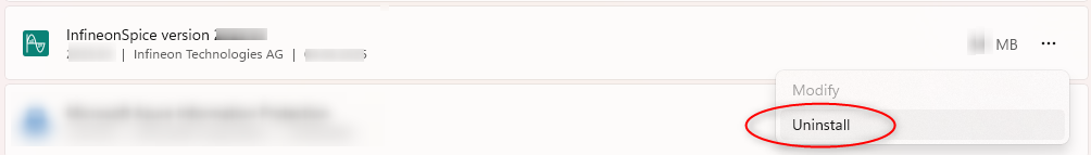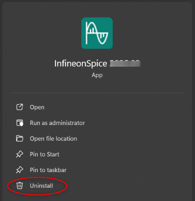 Note: After the InfineonSpice software has been removed, it might not be possible anymore to edit files created with the application.
