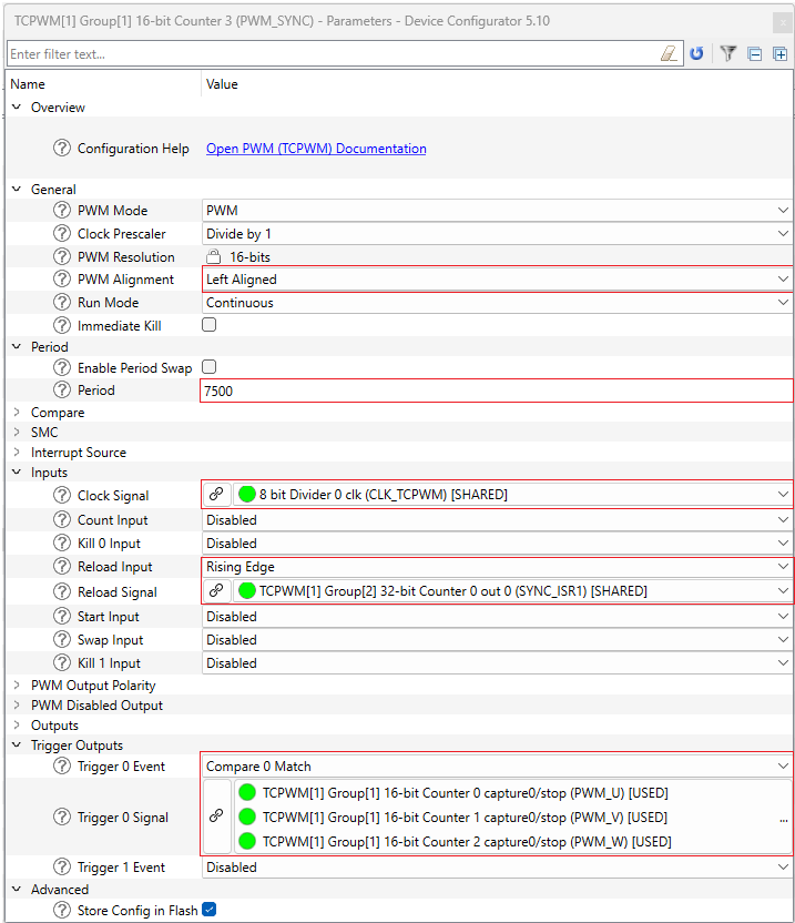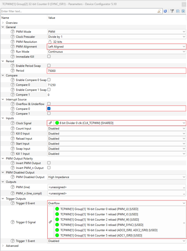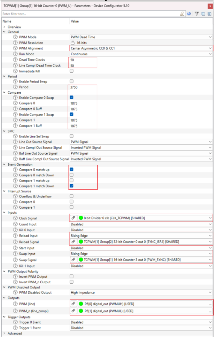 PWM_SYNC: Start in sync with PWM timers and trigger the PWM compare value swap | TCPWM[1] Group [1] Counter 3 | |