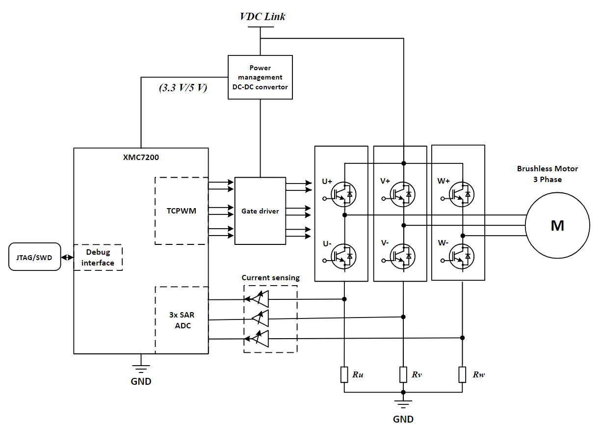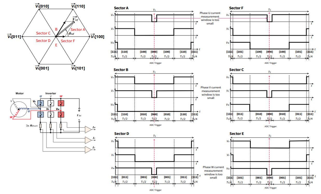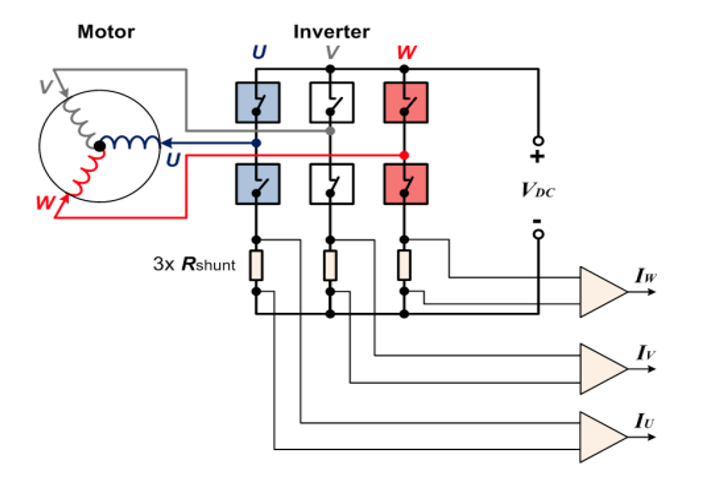 Sensorless FOC for brushless permanent magnet synchronous motors has been widely used as a control method in variable frequency drive applications. The system cost and energy efficiency are the two main factors driving the adoption of FOC-driven three-phase motors. For most applications, three shunt resistors located at the low side of inverter switches are used to measure three-phase motor currents for FOC. However, a single shunt is also widely used for cost-sensitive applications.