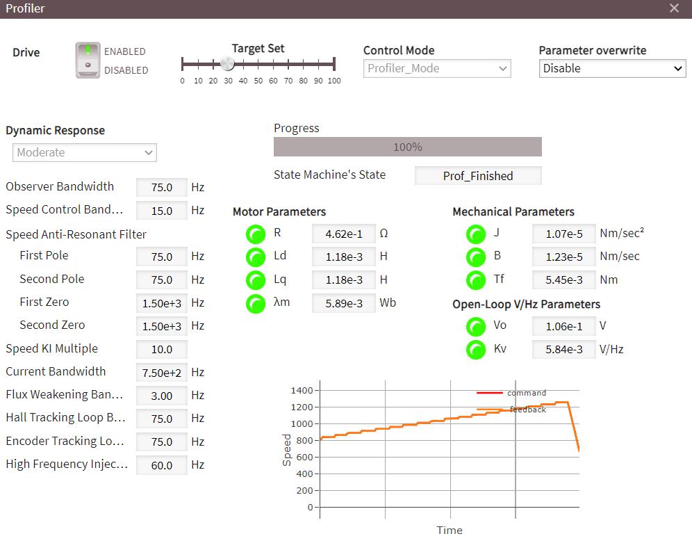 Additionally, the motor profiler calculates the open-loop V/Hz constant as well.