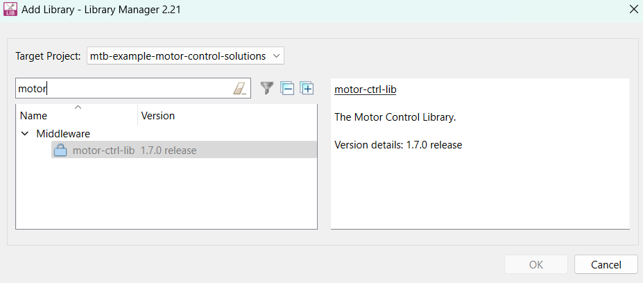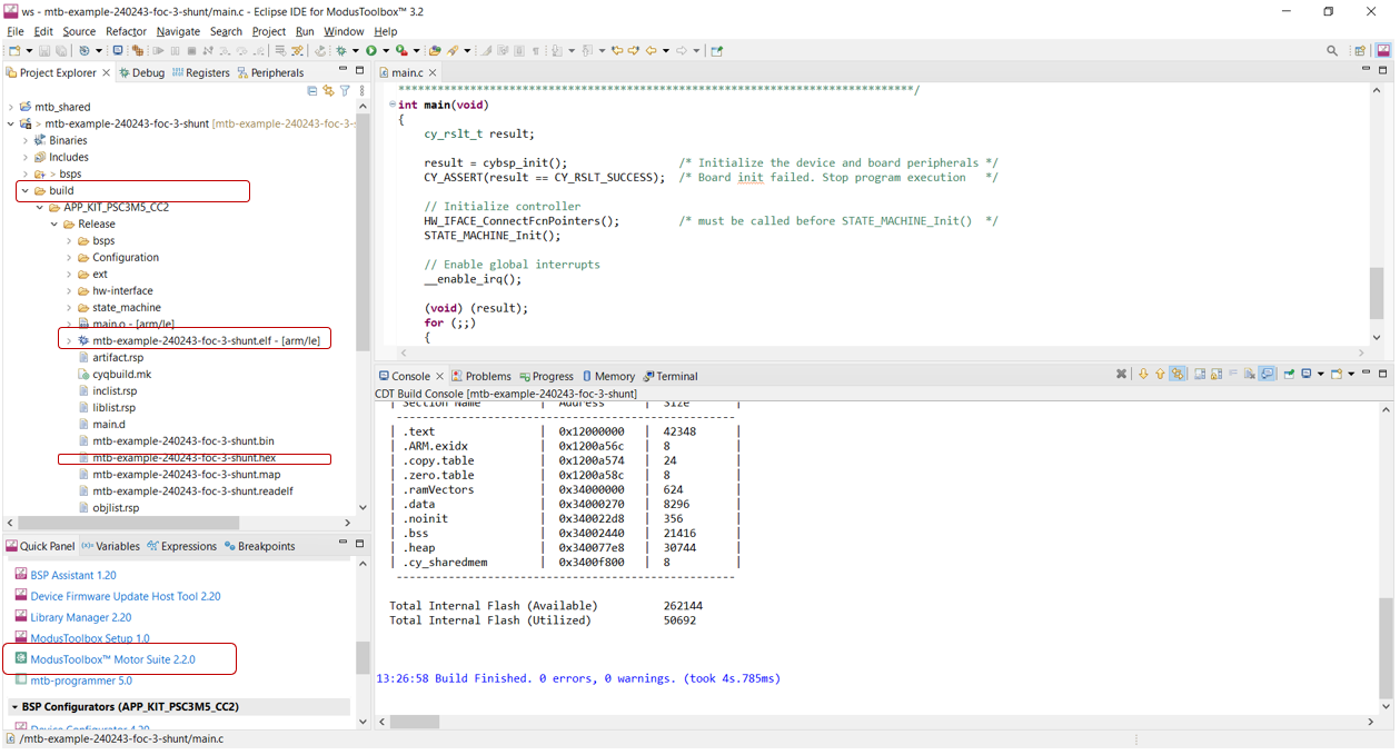 ModusToolbox™ Motor Suite launch from Quick Panel